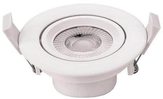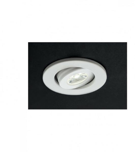 Beépíthető, LED-es kerek, billenthető spot lámpa matt fehérre festett alumínium vázzal és polikarbonát lencsével.