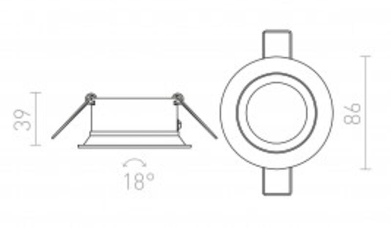 Nova Luce Pin LED víz-védett süllyeszthető lámpa. A lámpafejet a süllyesztett tokba teljesen vissza lehet tolni. 3000 Kelvines, azaz meleg fehér beépített LED fényforrást tartalmaz, mely nem cserélhető. Világítási szöge 24 fok, színvisszaadási aránya 90%. IP32-es védelemmel rendelkezik, azaz fröccsenő víz ellen védett. Kivágási átmérője 92mm. Specifikációk:Gyártó