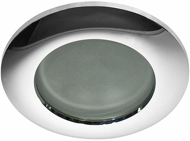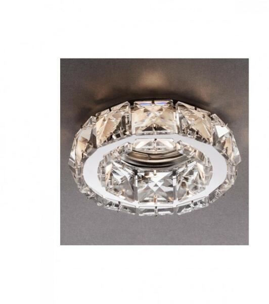 Króm színű, fém, mennyezetbe építhető lámpa kristály díszítéssel.