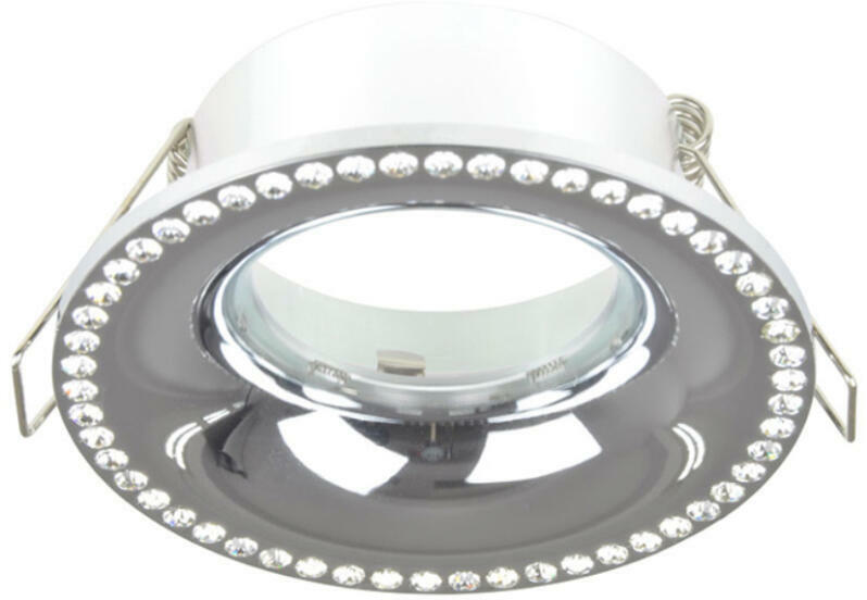 Kövekkel díszített, króm színű, beépíthető spotlámpa. Kivágási átmérője 75mm. A fényforrást a csomagolás nem tartalmazza. Kiemelő keret rendelhető hozzá többféle színben, melyet a kiegészítők között talál. Specifikációk:Gyártó : AZzardo Cikkszám:: AZ-2734 Foglalat: 1 x GU10-MR16 Méret (ma x sz x mé): 40 x 90 x 0 mm IP-védettség: IP20 Tápfeszültség: 230 Vol