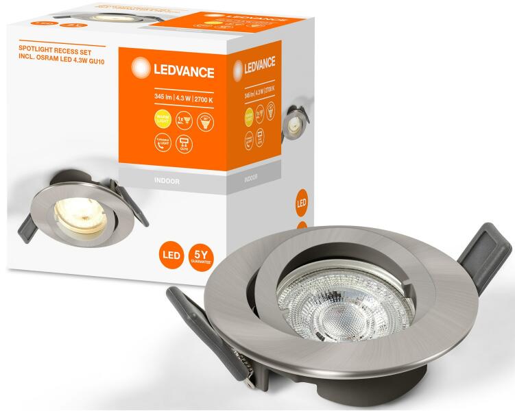 Ledvance állítható süllyesztett LED spotlámpa, 4,3W, 350 lm, meleg fény (2700K), átmérő 88,50 mm, Alumínium, Brushed Nickel