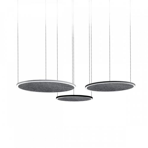 Akusztikai panellel rendelkező függeszthető mennyezeti LED lámpatestA kép tájékoztató jellegű - 1 db a kosárban 1 db függesztéket jelent!A kör alakú LED lámpatest közepére beépített akusztikai panelnek köszönhetően a lámpatest világítási funkcióján túl kiváló hangelnyelő funkcióval rendelkezikMennyezetre szerelhető, de az SKU 99ACC52-es függesztékkel függeszthe