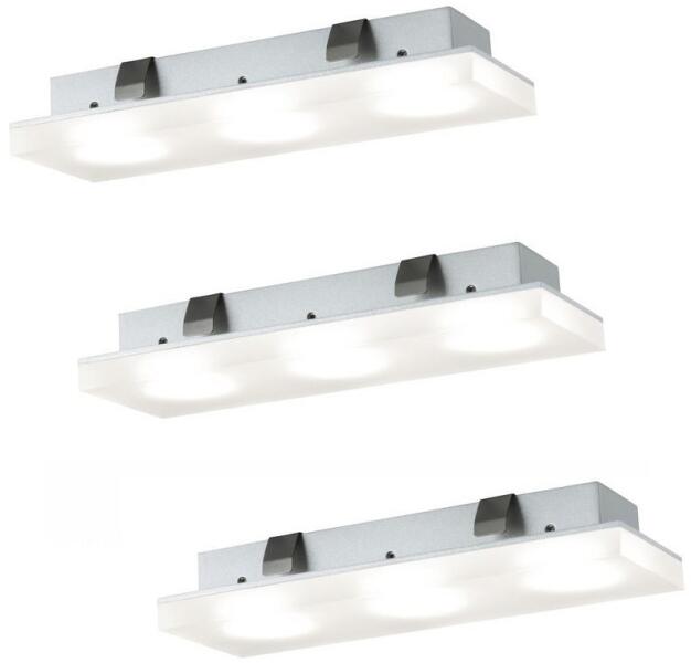 Készlet három darab lapos lámpaIdeális szekrényekbe és vitrinkbe történő beépítéshez. Anyag: műanyagTrafót a csomagolás tartalmazzaGaranciális időszak: 5 év INGYEN