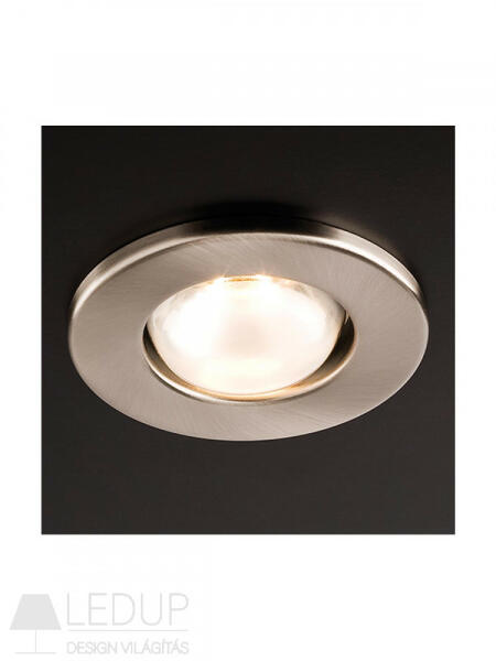 Süllyesztett fürdőszobai lámpatest gipszkarton mennyezethez lekerekített reflektorral, LED izzókhoz GU10 foglalattal.