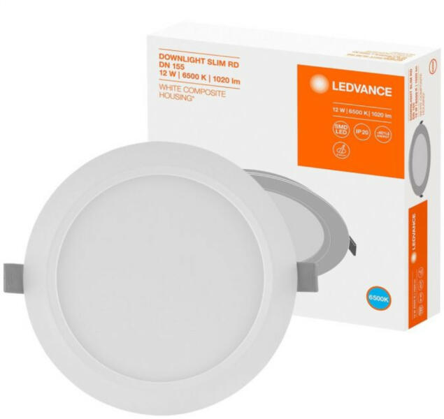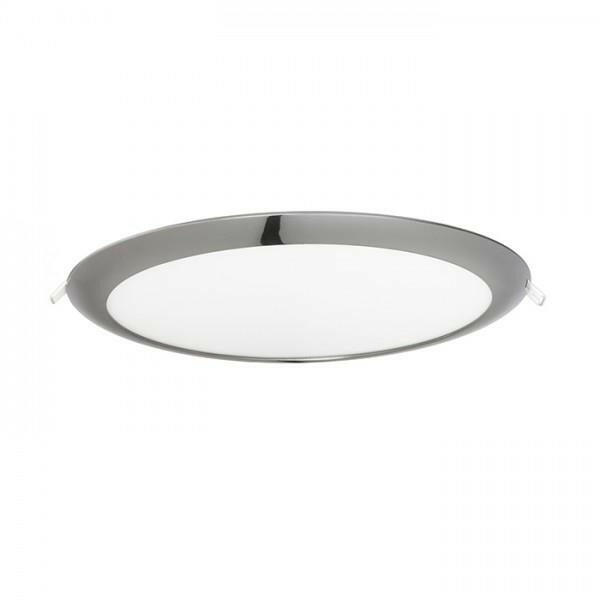 Kerek süllyesztett LED lámpatest gipszkarton mennyezetekhez lekerekített kerettel és alacsony süllyesztési mélységgel.