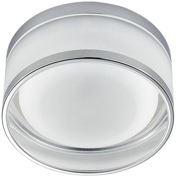 Króm színű alumínium vázas mennyezetbe építhető lámpa opálos műanyag búrával beépített LED fényforrással.