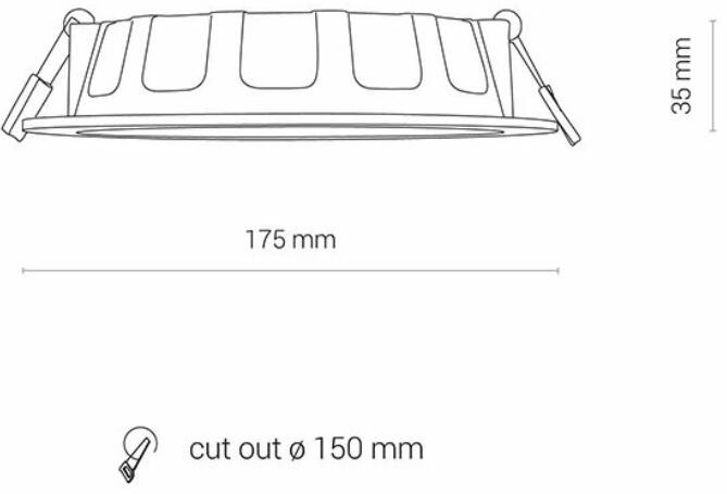 "Fehér, szintetikus beépíthető spot lámpa. Kivágási mérete: 150 mm, besüllyesztési mélysége 35 mm. Gipszkartonba süllyeszthető lámpa. Trafó nélkül működtethető. Milyen a lámpa fénye?Ebben a LED mennyezeti lámpában a beépített LED panel 4000K színhőmérsékletű, természetes fehér fényű, amely nem dimmelhető, és nem cserélhető. A fény színhőmérséklete befol