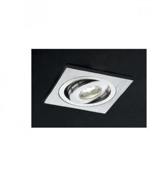 Beépíthető, LED-es szögletes, billenthető spot lámpa alumínium vázzal és polikarbonát lencsével.