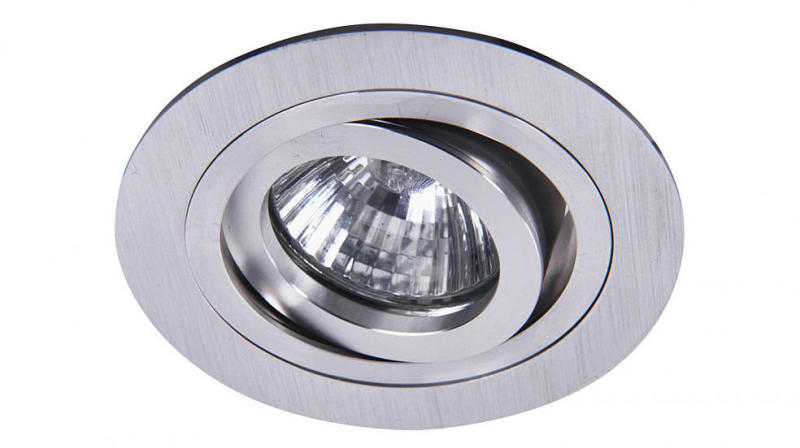 Gipszkarton álmennyezetbe és bútorlapba beépíthető, króm színű foglalattal, súrolt alumínium rámával készített lámpatest. A spotlámpa billenthető, a fény iránya állítható. GU5,3-as foglaltú maximum 50W teljesítményű halogén vagy LED izzóval használható. LED fényforrással a lámpatest polisztirol díszlécbe is beépíthető. A beépítési felület kialakításáho