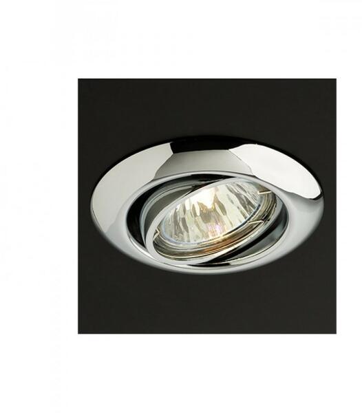 Króm színű, beépíthető, billenthető, kerek mennyezeti spot lámpa, fém vázzal.