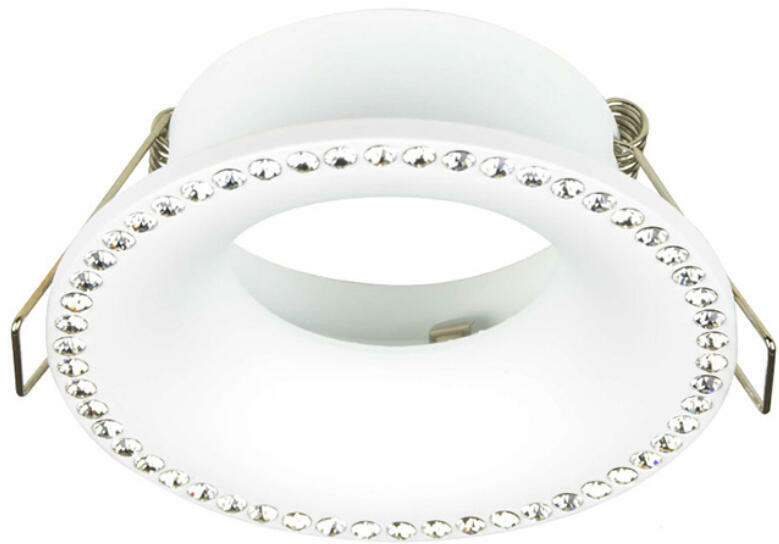 Kövekkel díszített, fehér színű, beépíthető spotlámpa. Kivágási átmérője 75mm. A fényforrást a csomagolás nem tartalmazza. Kiemelő keret rendelhető hozzá többféle színben, melyet a kiegészítők között talál. Az akciós ár a készlet erejéig érvényes. Specifikációk:Gyártó : AZzardo Cikkszám:: AZ-2738 Foglalat: 1 x GU10-MR16 Méret (ma x sz x mé): 40 x 90 x 0 m