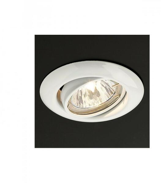 Fehér színű, beépíthető, billenthető, kerek mennyezeti spot lámpa, fém vázzal.