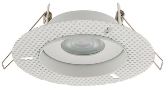 "Fehér színű, festett fém beépíthető spot lámpa. Kivágási átmérője 8 cm, besüllyesztési mélysége 85 mm. Feje fix, nem billenthető. Gipszkartonba süllyeszthető spot lámpa. A foglalatot tartalmazza a csomagolás, trafó nélkül működtethető. Milyen fényforrást ajánlunk a lámpába? A fényforrás nem tartozéka a csomagolásnak. Maximum 15W-os fényforrással üzemeltethe