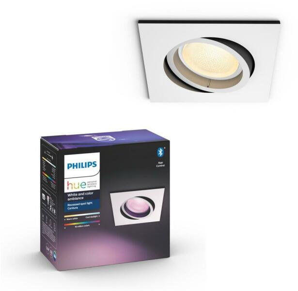 Philips Hue Centura süllyesztett szpotlámpa fehér Okosvilágítás egyszerűen a Philips Hue Centura süllyesztett szpotlámpával: GU10 LED-fényforrást tartalmaz Bluetooth-vezérlés alkalmazáson keresztül Irányítsa alkalmazással vagy a hangjával* További lehetőségekért Hue Bridge eszközzel bővíthető Szabályozzon akár 10 lámpát a Bluetooth alkalmazással A Hue Bluetooth alk