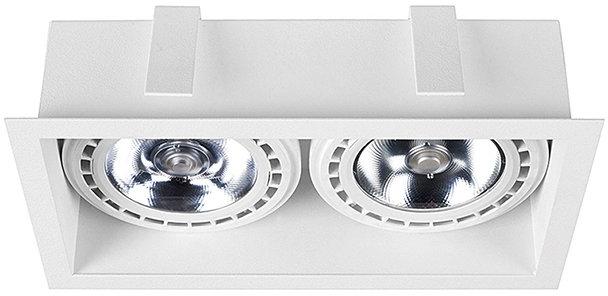 "Fehér színű festett fém beépíthető spot lámpa. Kivágási mérete: 119 x 233 mm, besüllyesztési mélysége 85 mm. Feje fix, nem billenthető. Gipszkartonba süllyeszthető spot lámpa. A foglalatot tartalmazza a csomagolás, trafó nélkül működtethető. Milyen fényforrást ajánlunk a lámpához?A fényforrás nem tartozéka a csomagolásnak. Maximum 75W-os fényforrással üzemelt