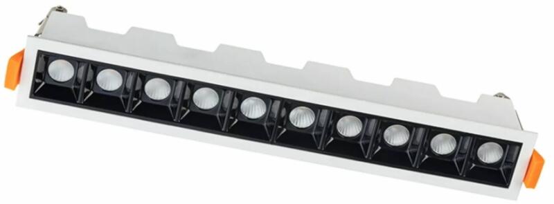 Modern stílusú, fehér színű beépíthető lámpa a Nowodvorski-tól. 4000K, azaz természetes fehér fényű beépített LED fényforrást tartalmaz, mely nem cserélhető. Tökéletes választás irodába, de ajánljuk a konyha, gardrób vagy hálószoba világításaként is. Kivágási mérete: 273x30. Specifikációk:Gyártó: Nowodvorski Cikkszám:: TL-10046 Foglalat: 1 x Beépített LED