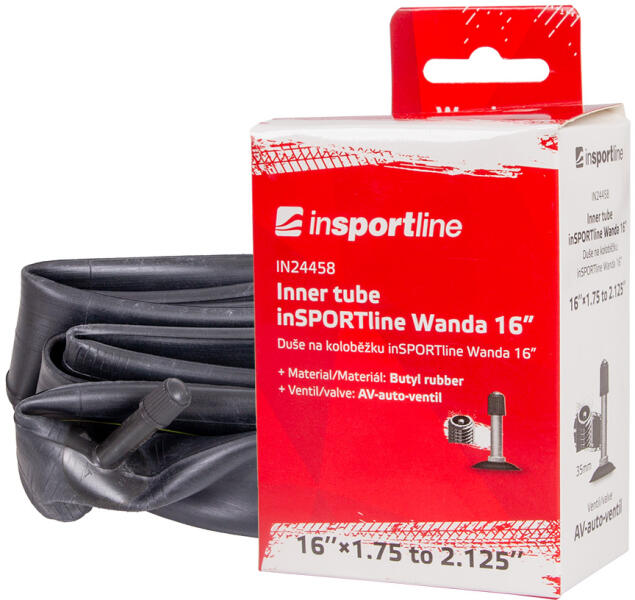 Az inSPORTline Wanda 16" tömlő a legjobb minőségű butilkaucsukból készült. Hosszú távú nyomásstabilitást és nagy átszúrásállóságot kínál. A 35 mm hosszú autószelep szabványos felnihez készült. Technikai leírás: hosszú távú nyomásstabilitás nagy átszúrásállóság an yag: butilkaucsuk szelep hossza: 35 mm a tömlő egyéb megjelölése: 47/57-305 = 16 x 1.75-2.1