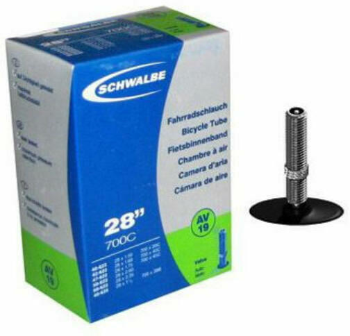 Schwalbe AV19 27,5/29 x 2,1/2,4 (40/62-584/622) MTB belső gumi 40 mm hosszú szeleppel, 220 g, autós 27,5-ös (650B), 29-es montikhoz és extra ballonos trekking gépekhez is - extra széleskörűen felhasználható belső. A Butyl alapanyagnak köszönhetően igen nagy a nyúlékonysága, tehát széles mérettartományban használható, csakúgy, mint a többi remek minőségű Schwalbe belső