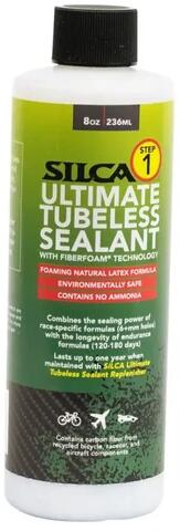Silca Ultimate tubeless defektjavító- és megelőző folyadék, 236ml Az egyetlen tubeless tömítő és defektjavító folyadék, mely karbonszálakat használ a latex emulzióba keverve. Így akár 6-7mm-es méretű vágásokat is képes lehet betömni! Megfelelő utántöltés mellett 12 hónapig megőrzi kitűnő tömítőképességét, és fagyos téli napokon is működik, ezért téli ker
