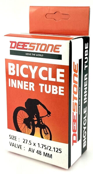 DEESTONE - kiváló ár-érték arányú gumibelső 27,5"-os (584mm) kerékpárhoz. Súlya: 210 gramm. AV - autószelepes Szelephossz - 48mm Anyaga: butyl