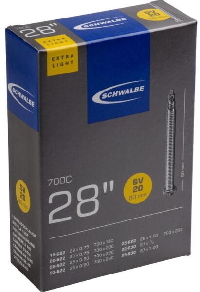 Schwalbe belső 622 SVL20 18/25-622/630 65G 80MM extra hosszú szelep xlight