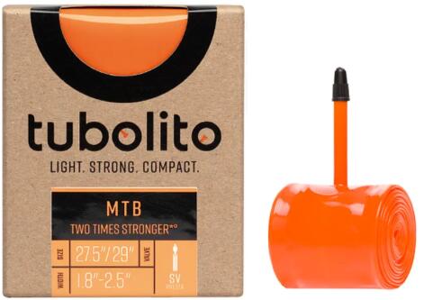 Tubolito MTB 27,5/29 x 1,8-2,5 (47/62-584/622) MTB belső gumi, FV42 (42 mm hosszú presta szeleppel), 83g, narancssárgaHasználható 27,5 és 29 colos kerekekhez is. Speciális, extra könnyű és erős TPU (thermoplast) anyagú belső. 27,5/29 colos méretben kerekenként akár 100g súly is megspórolható a hagyományos belső gumikkal szemben, és az a forgó tömeg csökkenése miatt igen j