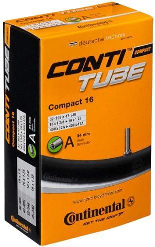 Kerékpár belső gumi 16-es kerékhez. Méret: 16/1.9-2.5 (305-50/62). Auto A34 szelep. A Continental univerzális tömlői egész köpenycsoportokat fednek le méretben, ezért is nevezik őket univerzális tömlőknek.