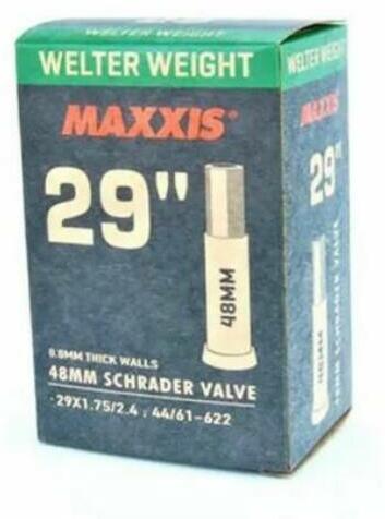 Maxxis Welter Weight (0,9 mm) 29 x 1,75/2,4 (47/60-622) MTB belső gumi AV48 (48 mm hosszú szeleppel, autós) A Maxxis Welter Weight belsők olyan agresszív kerékpárosoknak lettek kifejlesztve, akik tartós , ellenálló gumitömlőt keresnek. Ez a közepes súly ú 0,9 mm falvastagságú belső a Dirt és freestyle műfaj kedvelőinek és a városi harcosoknak készült. Nem ismered ez a már