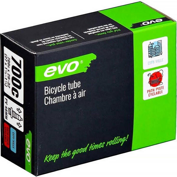 Evo néven észak-amerikai piacra gyártott Vee Rubber kerékpár tömlő Kiváló minőségű kerékpár tömlő Butyl alapanyagból FV48 fémházas, rögzíthető Presta szelep