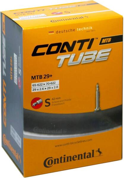 Kerékpár belső gumi 29-es MTB kerékhez. Méret: 29x2.6-2.8 (622-60/70). Presta S42 szelep. A Continental univerzális tömlői egész köpenycsoportokat fednek le méretben, ezért is nevezik őket univerzális tömlőknek.