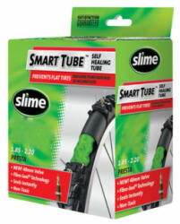 Slime Smart Tube 27,5 x 2,00-2,4 (50-60x584) defektvédett MTB belső gumi, FV48 (48 mm hosszú szeleppel, presta) A tömlő belső fala egy preventív, gél alapú defektvédő bevonattal rendelkezik. A bevonat organikus rostokból, polimerekből, kötő-, sűrítő- és szilárdító anyagokból áll, amely 3 mm méretig eltömíti a lyukakat, így biztosít nagyobb védelmet a defekt ellen. A k