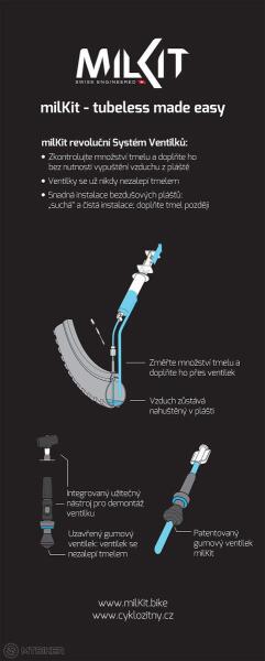 A milKit termékek megkönnyítik a tömlő nélküli gumiabroncsok karbantartását. Innovatív megoldásunk megváltoztatja a cső nélküli rendszerre való átállás módját és a tömítőanyag kezelését. Szerelje be a tömlő nélküli gumiabroncsokat egyszerűen és zökkenőmentesen: csak akkor adjon hozzá tömítőanyagot, ha az abroncs teljesen fel van szerelve. Ellenőrizze a töm