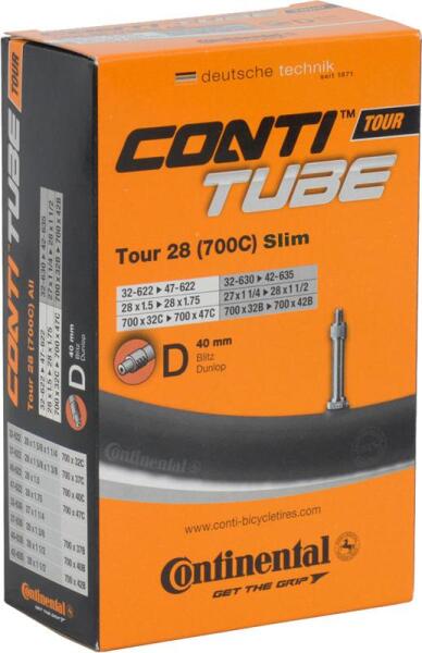 Tulajdonságok Continental belső tömlő kerékpárhoz 32/47-622/642 Tour 28 Hermetic Plus D40 dobozos (Egységkarton: 25 db) A Continental univerzális tömlőrendszer előnyei: Az univerzális tömlők rugalmasabb anyagból készülnek, mint a hagyományos tömlők. Az univerzális tömlőket több köpenynagyságnál, méretnél is fel lehet használni. Egész köpenycsoportokat fednek le mér