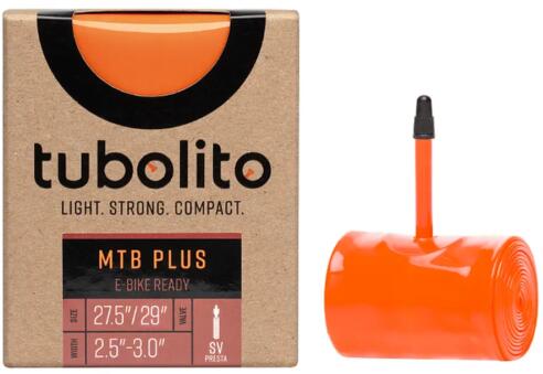 Tubolito MTB Plus 27,5/29 x 2,5-3,0 (64/75-584/622) MTB belső gumi, E-bike-ready, FV42 (42 mm hosszú presta szeleppel), 101g, narancssárga Használhat 27,5 és 29 colos kerekekhez is. E-Bike Ready. Megfelel az E-Bike szabvány előírásainak . Az alacsony gördülési súly csökkenti a hajtáshoz szükséges energiát, így növelve az akkumulátor hatótávját és élettartamát. Speciális
