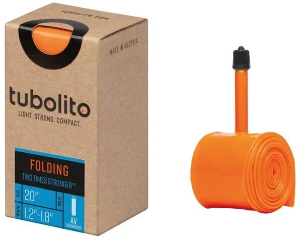 Tubolito Folding Bike 20x1,2-1,8 (30/47-406) belső gumi, AV40 (40 mm hosszú autó szeleppel), 53g, narancssárgaKifejezetten összecsukható városi kerékpárokhoz (pl Brompton, Birdy) készült belső. Felére csökkenti a szúrásos defekt esélyét, a hagyományos belső gumikhoz viszonyítva. Speciális, extra könnyű és erős TPU (thermoplast polyurethane) anyagú belső. Kerekenként ak