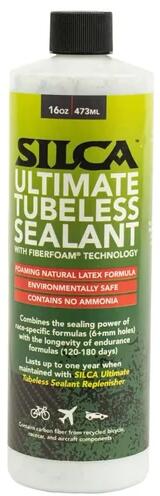 Silca Ultimate tubeless defektjavító- és megelőző folyadék, 473ml Az egyetlen tubeless tömítő és defektjavító folyadék, mely karbonszálakat használ a latex emulzióba keverve. Így akár 6-7mm-es méretű vágásokat is képes lehet betömni! Megfelelő utántöltés mellett 12 hónapig megőrzi kitűnő tömítőképességét, és fagyos téli napokon is működik, ezért téli ker