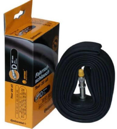 Schwalbe 700 x 28 - 45C belső gumi A kerékpár belső főleg butilgumiból készül . A gumiabroncsokhoz hasonlóan a gumikeverék létrehozásához további adalékanyagokra van szükség. A belső minősége jelentősen változhat a gumi összetételétől függően. Például a Schwalbe belsők rendkívül magas nyomásstabilitással és rugalmassággal rendelkeznek. Ez a nagy rugalmasság le