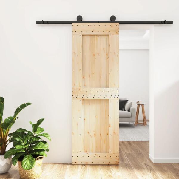 vidaXL tömör fenyőfa tolóajtó fémszerelék szettel 80 x 210 cm Ezt a tömör fenyőfa tolóajtót úgy tervezték, hogy gazdagítsa háza bejáratát, és nagyobb biztonságot nyújtson otthona számára. Tömör fenyőfa: Ez a beltéri ajtó tömör fenyőfából készült. A tömör fenyőfa egy gyönyörű, természetes anyag. A fenyőfa egyenes erezetű, a csomók pedig jellegzetes, rusz