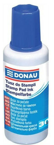 Bélyegzőfesték, 30 ml, DONAU, kék Univerzális bélyegzőfesték -vízbázisú irodai bélyegzőfesték, önfestékező bélyegzőkbe, bélyegzőpárnákba -űrtartalom: 30 ml -a kupak színe megegyezik a tinta színével