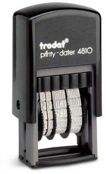Bélyegző dátum TRODAT 4810 MA fordított számmal megjelenített fekete ház fekete párna Műanyagházas, önfestékező, automata, 3,8mm-es betűméretű, mini dátumélyegző. FORDÍTOT, CSAK SZÁMOS