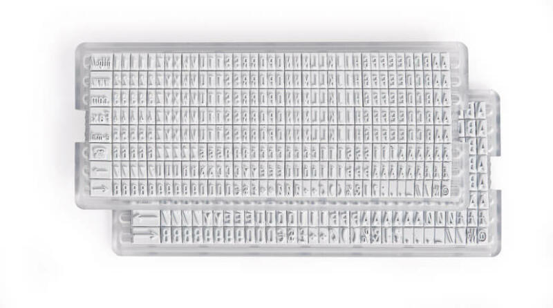 Betűkészlet 4 mm magas karakterekkel. 256 betű és jel.