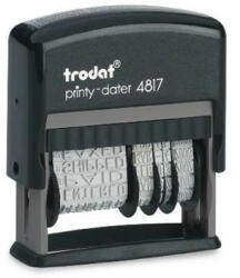 Dátum- és szövegbélyegző, 12 féle szöveggel, TRODAT "4817" - önfestékező rendszer - szövegablak a szavak kiválasztásához - a beállított szó a dátummal egy sorba kerül - az évszalag 12 évig használható - karaktermagasság: 3,8 mm - A bélyegzőn beállítható szavak: ÁTUTALVA ÁTVÉVE BEVÉTELEZVE ELLENŐRIZVE ÉRKEZETT FAXOLVA FIZETVE IKTATVA KIADVA KÖNYVELVE MEGRENDELVE