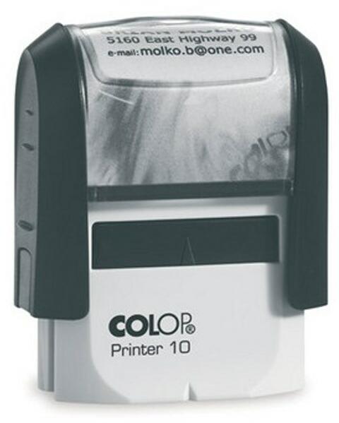Bélyegző, COLOP "Printer C10" Fekete színű bélyegző négyszögletes lenyomathoz. Ergonómikus kialakítás, egyszerű használat. -cserepárna színe: fekete -lenyomat mérete: 27x10 mm, 3 sor -cserepárna: E10