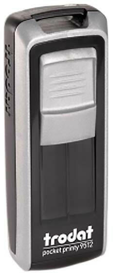 Bélyegző TRODAT Pocket Printy 9512 zseb ezüst ház fekete párna Zsebbélyegző. Sorok száma: 5. Méret: 47x18mm. Cserepárna: 6/9512.