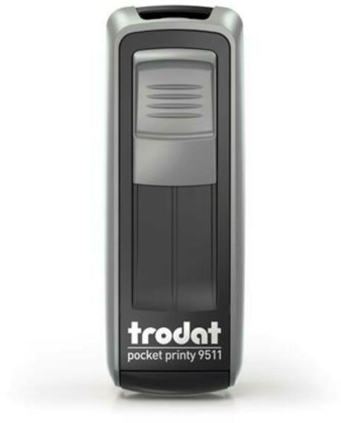 Bélyegző, TRODAT "Pocket Printy 9511", ezüst ház, fekete párnával önfestékező rendszer könnyű használat műanyag ház fekete párnával max. 4 sor szöveg nyomat méret: 38x14 mm cserepárna: 6/9511