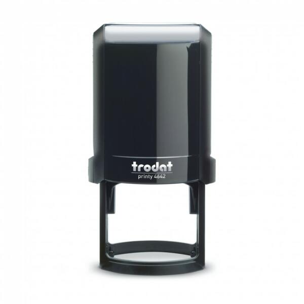 Trodat 4638 körbélyegző (ø 38 mm) lenyomattal együtt használatra készen. A Trodat Printy 4638 az egyik legkedveltebb önfestékező körbélyegző, nagyon elegáns fekete színben. Beépített cserepárna – egyszerűen és tisztán cserélhető, nem szárad be, külön bélyegzőpárnára nincs szükség, azaz önfestékező. A bélyegzőlenyomat színét egyszerűen kiválaszthatja az ad