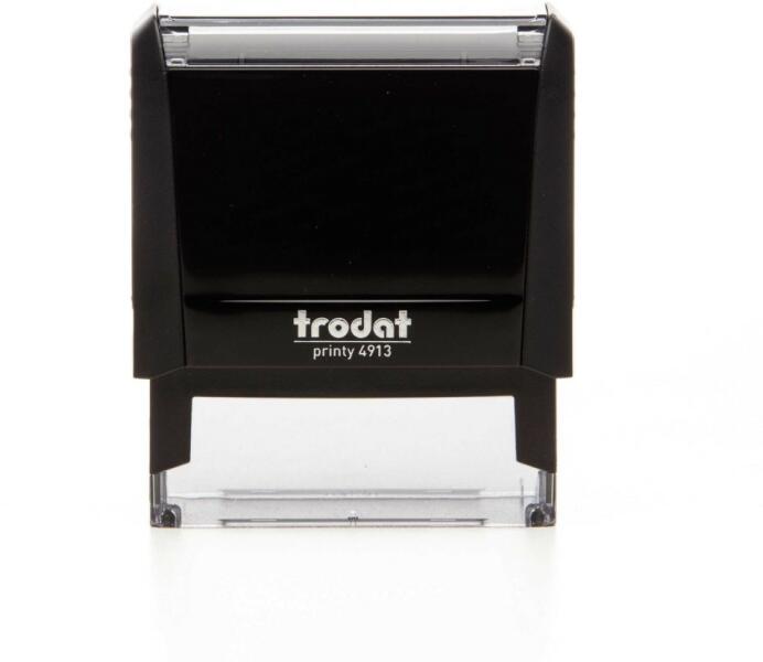 Trodat 4913 Fekete bélyegző lenyomattal együtt használatra készen A Trodat Printy 4913 a legkedveltebb önfestékező bélyegző hűvösen elegáns fekete színben. Maximum 6-7 sor adat fér el a lenyomaton, egy egyéni vállalkozó vagy egy társas vállalkozás főbb adatai mellett plusz információ feltüntetésére is megfelelő vagy akár egy kisebb logó elhelyezésére. A modern eleme