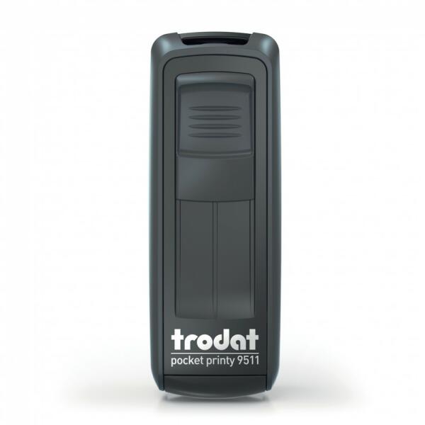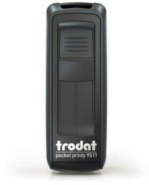 Trodat Pocket Printy 9511 ECOBLACK zsebbélyegző (38x14 mm) lenyomattal együtt használatra készen. A Trodat Pocket Printy 9511 a legkedveltebb önfestékező zsebbélyegző fekete színben. A zsebbélyegzőcsalád kisméretű tagja maximum 4 sor szöveggel, teljesen fekete színű vázzal. Tökéletes megoldás azok számára, akik sokat utaznak, és a bélyegzőre is gyakran szükségük van.
