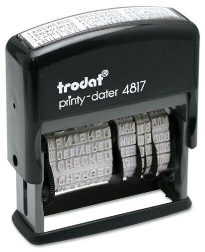Forma:szögletes, Ház anyaga:Műanyag, Festék színe:fekete, Cserepárna száma:6/4817, Ház színe:fekete, Lenyomat mérete:3,8 mm, Bélyegző típusa:dátum+szöveg,