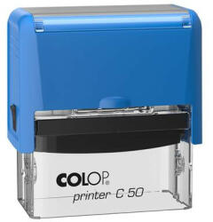 Bélyegző, COLOP "Printer C 50" Szövegbélyegző négyszögletes lenyomathoz. Ergonómikus kialakítás, egyszerű használat. -cserepárna színe: fekete -lenyomat mérete: 69x30 mm, 7 sor -cserepárnája: E50/1